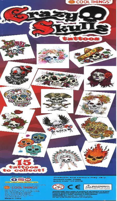 Assorted termporary skull tattoos